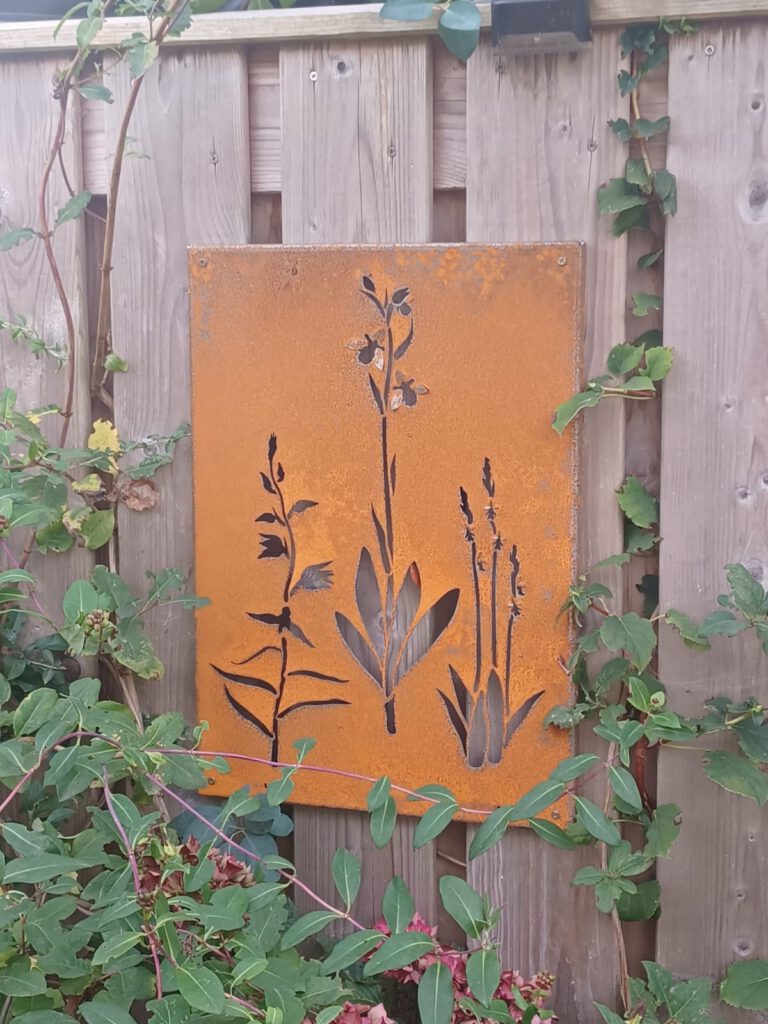 Corten platen geleverd voor een hekwerk. Na wat regenbuien krijgen ze de mooie roestige kleur.