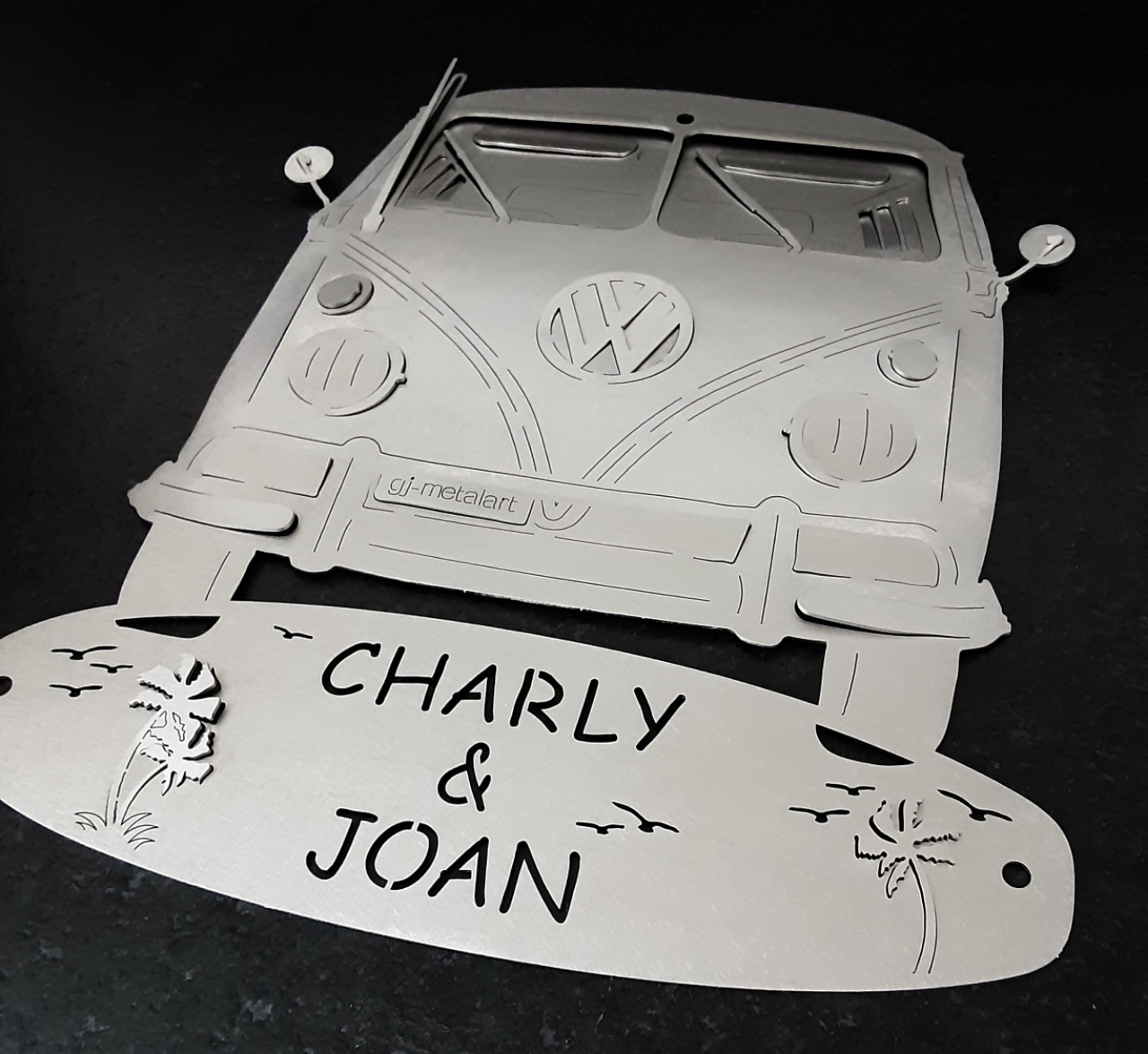 Naambord met een zeilboot, rvs 316 afmeting 15,5 x 26,5 cm Opvullijst, zwart ultraviolet bestendig kunststof, is los te bestellen, zo ontstaat er afstand tussen…