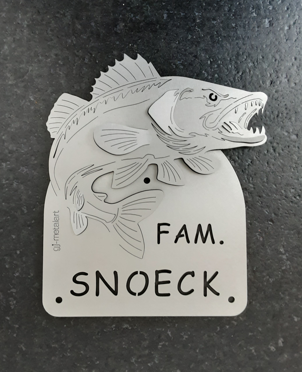 RVS 316 naambord of huisnummer met een snoekbaars.